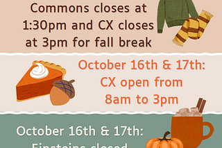 Make sure you know what is open and when to make sure you don't go hungry this fall break!