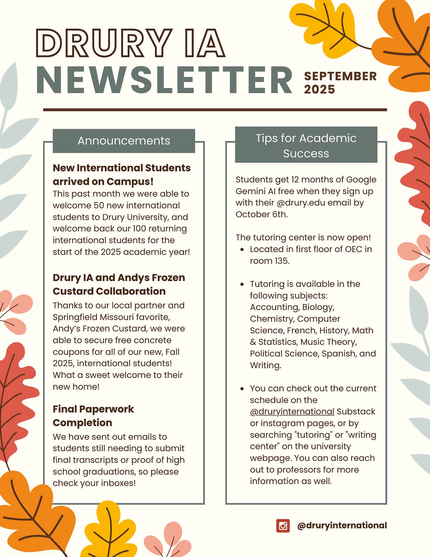 Our September Newsletter🍂What a great start to the school year it has been! Find highlights from this past month, as well as tips for academic success and important dates here🐾Your Friends at DrurySep 10, 2025SharePreviousNext